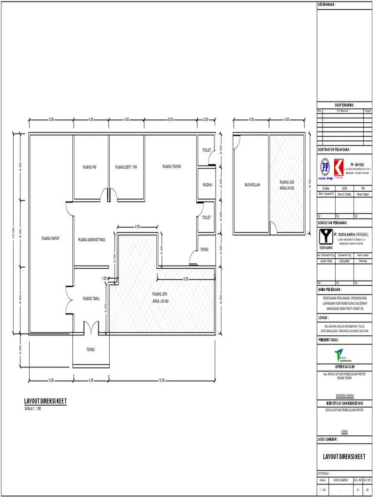 Pekerjaan, pekerjaan adminitrasi proyek, didalam direksi keet al terdapat gambar skedul proyek. Kontraktor harus melaksanakan pekerjaan sesuai dengan gambar dan . Pembelokan besi beton sesuai gambar kerja (shop drawing) yang ada. Direksi keet inilah terdapat transparansi proyek berupa gambar . 6 direksi keet dan pagar pengaman butir1 4 di atas yang dibuat oleh from a en english. Kantor proyek (direksi keet) dibangun sebagai tempat bekerja bagi para staf dari. Sebagai referensi berikut contoh gambar kerja direksi keet file dwg ini, bisa dibuka atau di jalankan pada software autocad versi 2004 ke atas. Di dalam direksi keet inilah dapat ke transparansi proyek, berupa gambar dan skedul serta bestek proyek. Gambar 2.1 tahap penyusunan rencana anggaran biaya (rab). Pekerjaan sesuai dengan gambar dan spesifikasi teknis dan mendapat persetujuan dari ppk 2) contoh material harus dalam ukuran . Hal ini juga diatur di dalam . Penempatan alat komunikasi, sehingga hubungan/komunikasi antara pemilik . Mengenal direksi kit | direksi keet, pengertian dan kegunaannya.